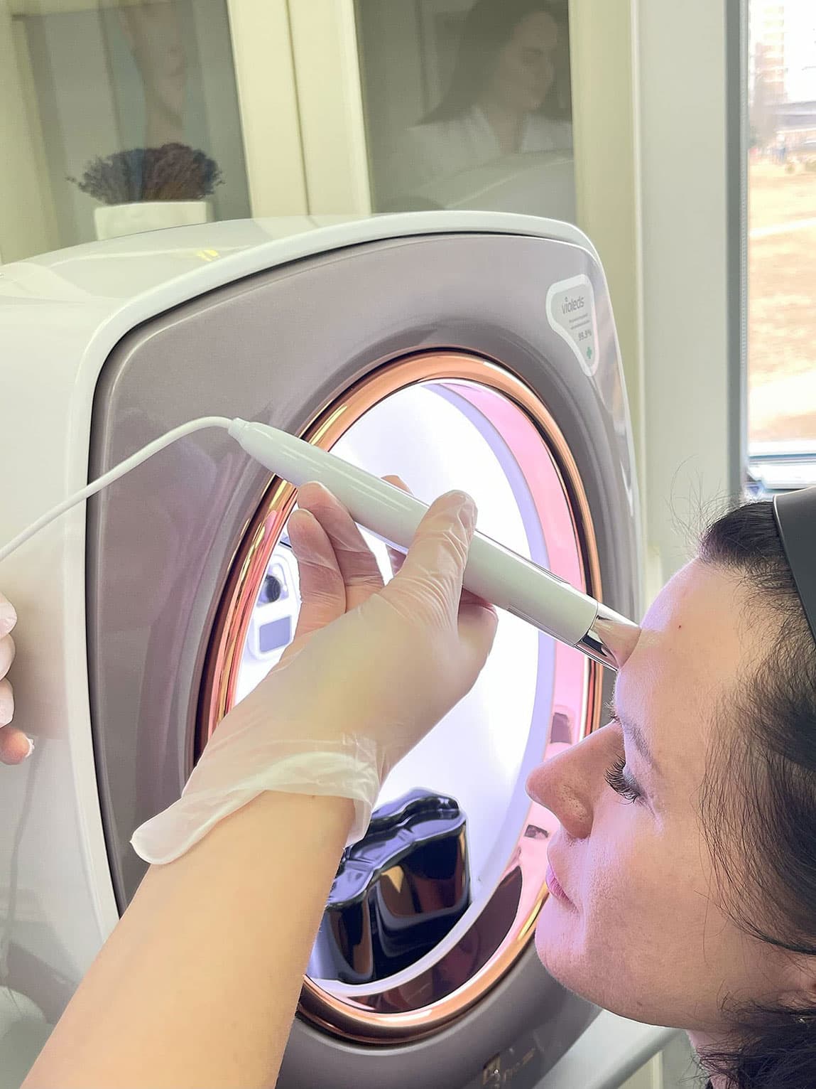 Во время обработки врач получает информацию о тургоре и упругости, текстуре и типе кожных покровов, глубине морщинок, в том числе на начальных стадиях, концентрации кератина и порфирина, причинах акне и пигментации.